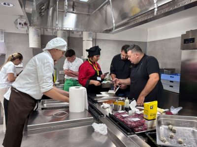 U sklopu Erasmus+ programa naša škola ugostila je partnere iz Slovenije i Francuske. Slovenski chefovi Aneta Martinčić iz restorana Jež i Tadej Petrič iz hotela Europa održali su dvije kulinarske radionice, pripremivši pritom raznolika jela i dijeleći praktična znanja s učenicima.